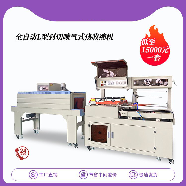 自動套膜熱收縮封切機結構緊湊占地面積小,非常適合配套自動包裝流水線完成產品的自動無人化包裝,適合于單個物品包裝或有底托物品包裝。自動送膜打孔裝置和手動調節的導膜系統以及手動調節的進料輸送平臺,可適于不同寬度和高度的產品,實現一臺機器滿足各種尺寸的包裝物品。配合L型封切刀使收縮膜包裝一次封切成型,鍍特氟龍不粘層封口布,封切不黏膜,且封口整齊不開裂,產品經封切后,進入自動塑料膜熱收縮包裝機完成包裝。