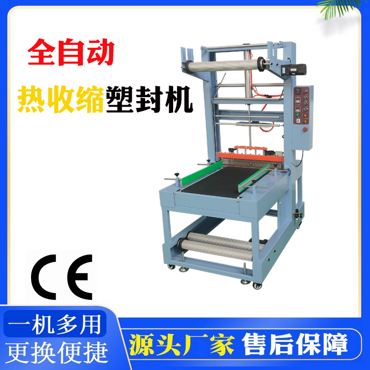 袖口熱收縮包裝機的工作原理要相比那些收縮機等較大型的包裝設備要簡單些容易了解些。當裝熱收縮膜物品的包裝放置熱封膜輸送帶上,袋的封口部分被自動送入運轉熱收縮槍的兩根封口帶之間,并帶入加熱區,加熱塊的熱量通過封口帶傳輸到袋的封口部分,使薄膜受熱熔軟,再通過冷卻區,使薄膜表面溫度適當下降,然后經過滾花輪或印字輪滾壓,使封口部分上下塑料薄膜粘合并壓制出網狀花紋或印制標志,再由導向橡膠帶與輸送帶將封好的包裝袋送出機外。