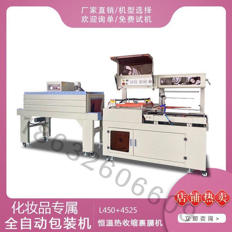 1、膜卷放置全自動熱收縮包裝機模架后右邊空余寬度應當比三角板多出一部分,這部分最好為產品高度的一半;